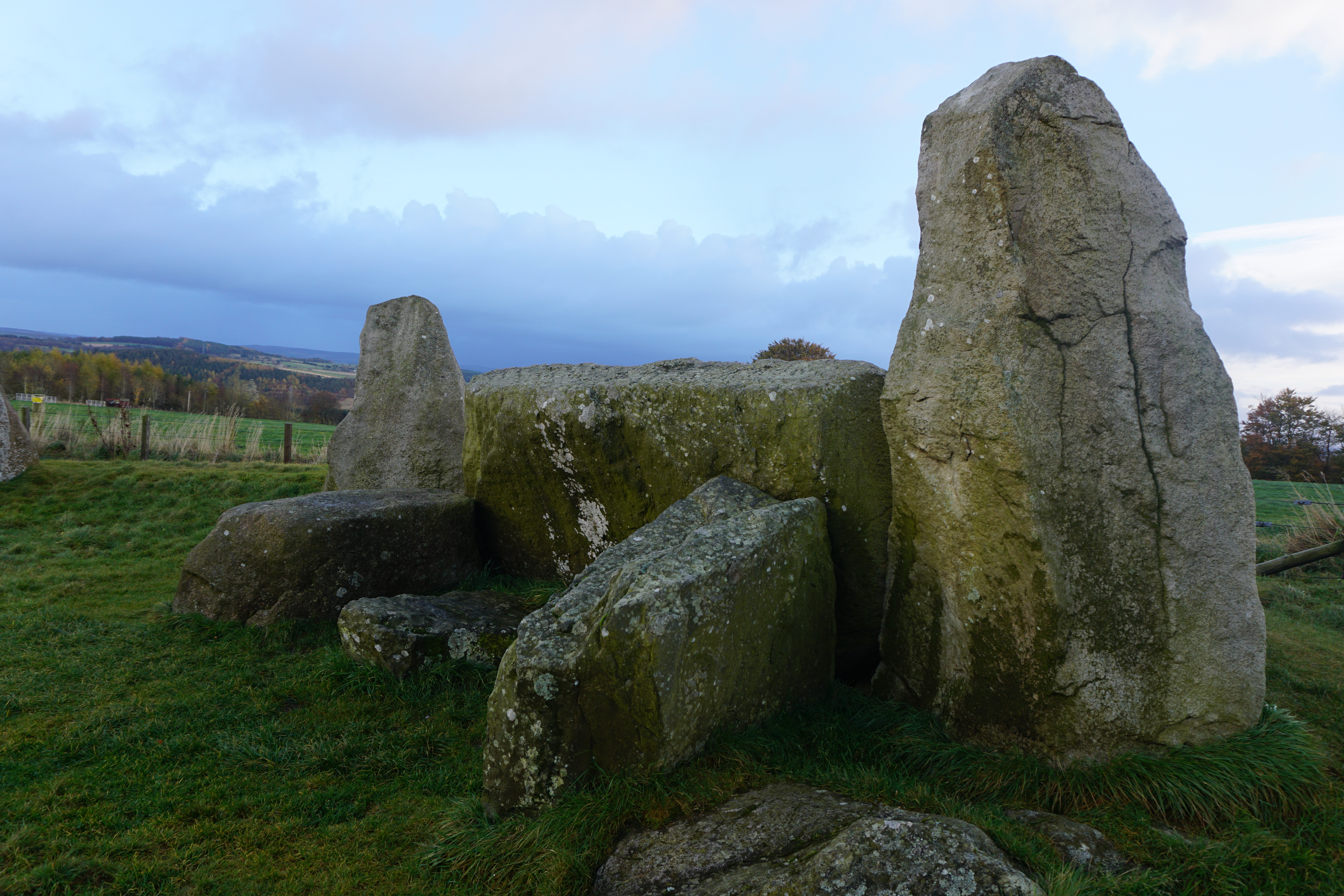 Ancient sound techology in Scotland examples  🔗Aarron Watson’s photo of the dwarfie stane (top left). Own photos of Easter Aquhorthies recumbent stone circle with sonic properties.