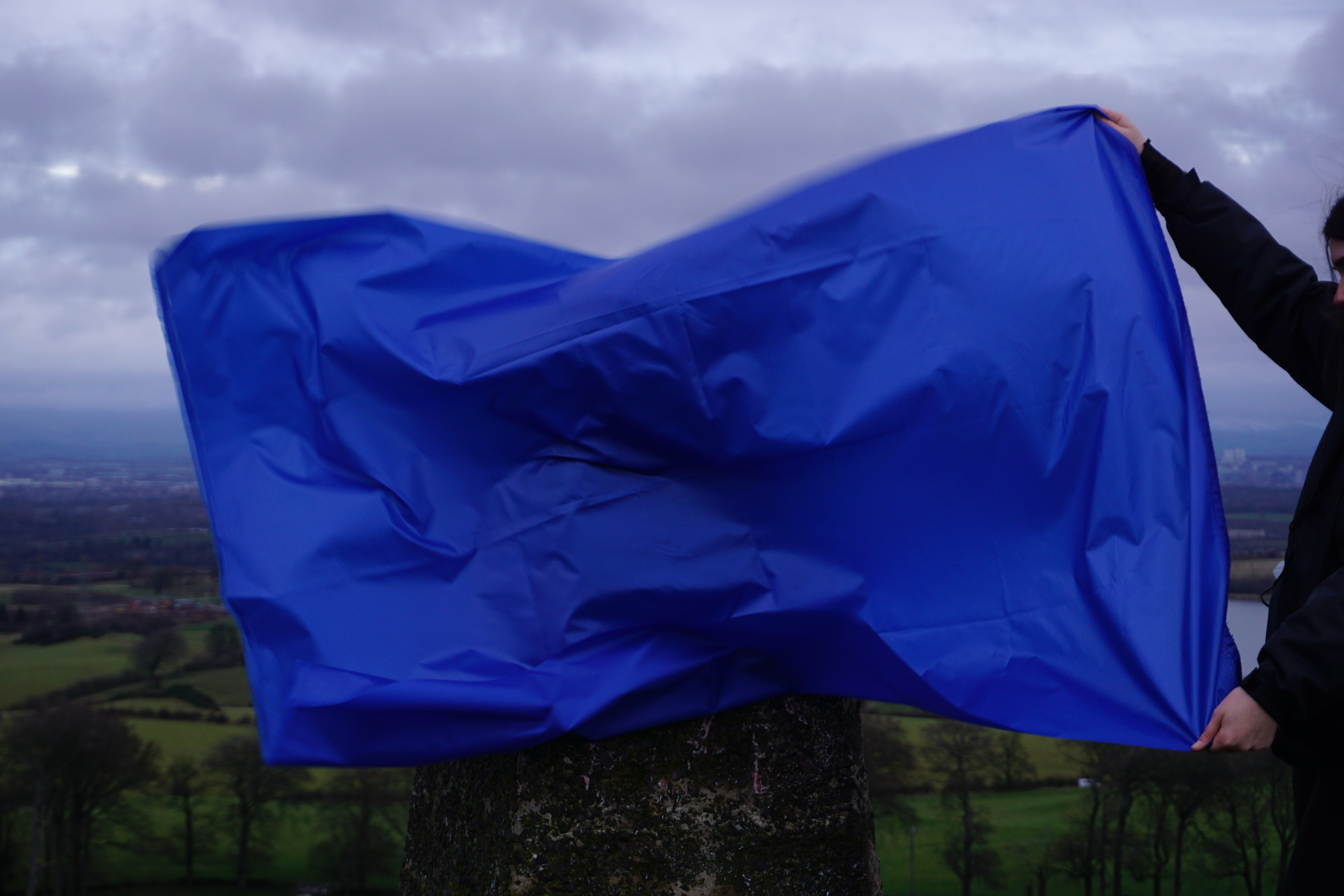 Tarpaulin sheets, bundled and shoved into backpacks, along with a camera and recorder. These will be used as fictionalised devices to pick up/absorb EMW in the atmosphere - translating radio waves and communication technologies invisible to our ears and eyes into sound. I moved away from dome shapes as they amplify noise and project it outwards. In contrast, these sculptures are designed to attract EMW and convert them into audio. These devices capture all within the landscape, attracting and entrapping technologies, they look beyond the binarism of the landscape and imposed place identity, seeking the obsolete, destroyed, working and hidden.